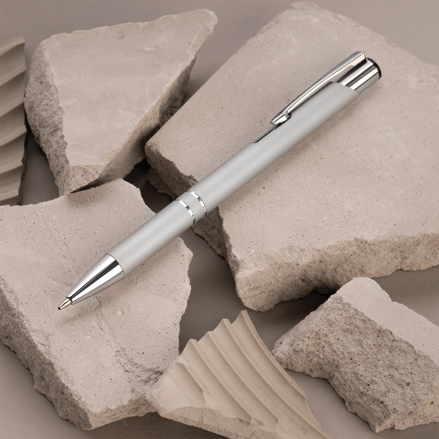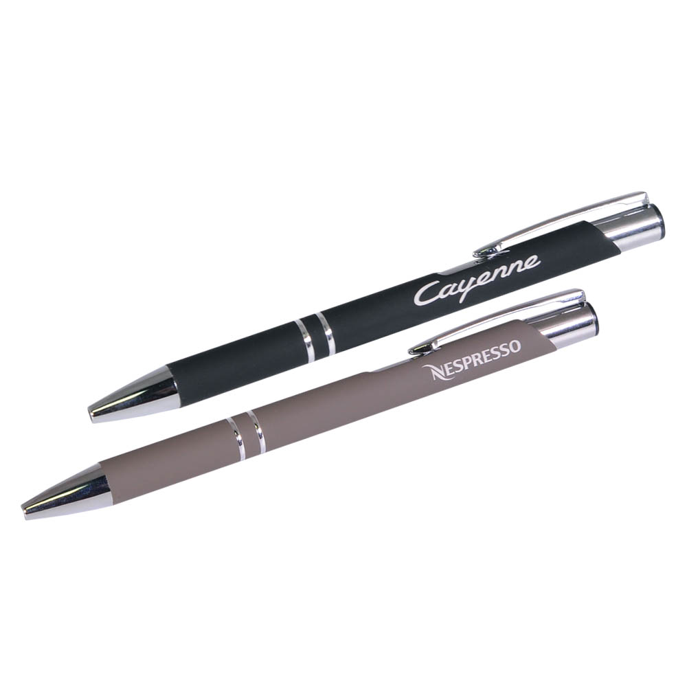Классическая ручка в шелковистом покрытии soft touch станет прекрасным инструментом для письма. Хромированные детали – два декоративных кольца и функциональный надежный клип.